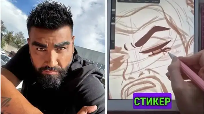 Във видеото, споделено в стори, се вижда как артистът внимателно извайва характерните черти на Азис върху таблет, а под кадъра стои надписът „Стикер“.