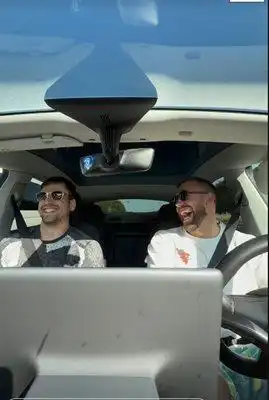 В краткото видео Русинов показва как управлява електромобила по път към поредната си лятна почивка. В кадъра се вижда ръката му на волана, чаша с кафе до таблото и разкошна гледка в далечината – типичен лайфстайл момент, който не остава незабелязан от феновете му.