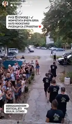 Водещата Мария Силвестър сподели кадър от снимачния процес в социалните мрежи, показващ десетки усмихнати русенци, събрали се да аплодират екипа на предаването. „Русе, първи епизод. Момчетата вчера бяха като рокзвезди. Русенците са страхотни“, написа тя.