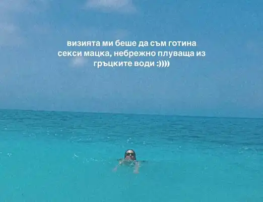 На почивката я придружава близкият ѝ приятел – популярният инфлуенсър и писател Емил Конрад. Двамата не крият доброто си настроение и споделят кадри, изпълнени с хумор и лекота. Лятната им атмосфера прелива от усмивки, шеговити пози и... нотка естетика, която само Гърция може да вдъхнови.
