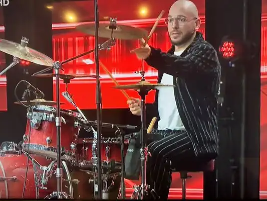Миг по-късно обаче Цитиридис сам се озова в центъра на шоуто, след като колегите му го предизвикаха да седне зад барабаните и да покаже как се прави.