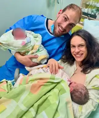 Даяна Ханджиева, която стана популярна покрай участието си във "Фермата" преди няколко години, се пошегува и със самата себе си, дори и в момент като този, заявявайки, че явно е трябвало да избере по-малък мъж - защото децата са се родили с тегло 3.680 и 3.100 кг. Малките сестрички вече се радват и на батко - малкият Антони, роден в края на 2023 г./show.blitz.bg