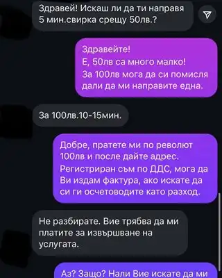 Така започнало едно импровизирано “наддаване”, което бързо прераснало в истински диалог на абсурда – с предложения за „лизинг“, за „работа с езика“ и още лафове, достойни за стендъп шоу. Актьорът публикува част от разговора в социалните мрежи с коментар: „Добра оферта, но нещо не се разбрахме.“