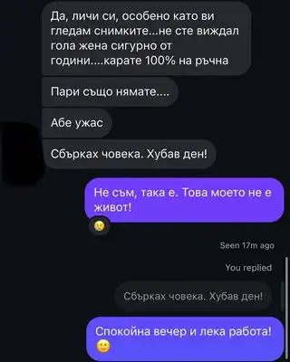 Докато тренирал във фитнеса, актьорът получил неочаквано съобщение. Но не става дума за обичайно фенско "Обичам те", а за съвсем друга оферта – интимна услуга срещу 50 лева! Вместо да подмине, Буков решил да обърне ситуацията на шега и отвърнал със: „100 лева и ще си помисля“.
