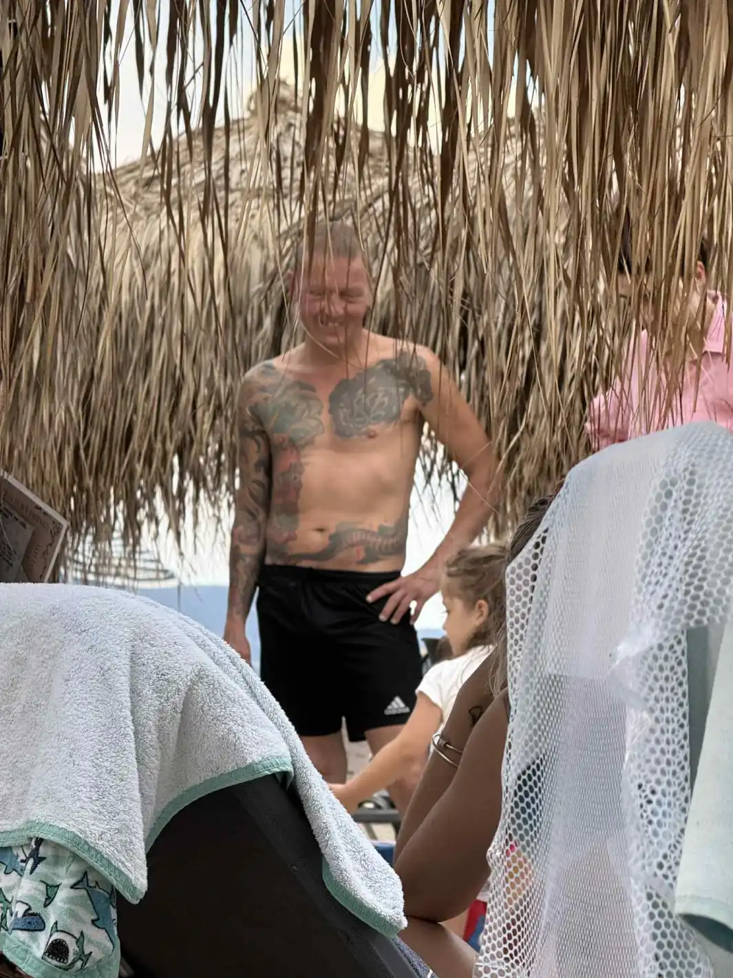 Но репортер на БЛИЦ успя да го засече и направи папарашки снимки директно от бар „Бамбу“ на гръцката Астраволта.